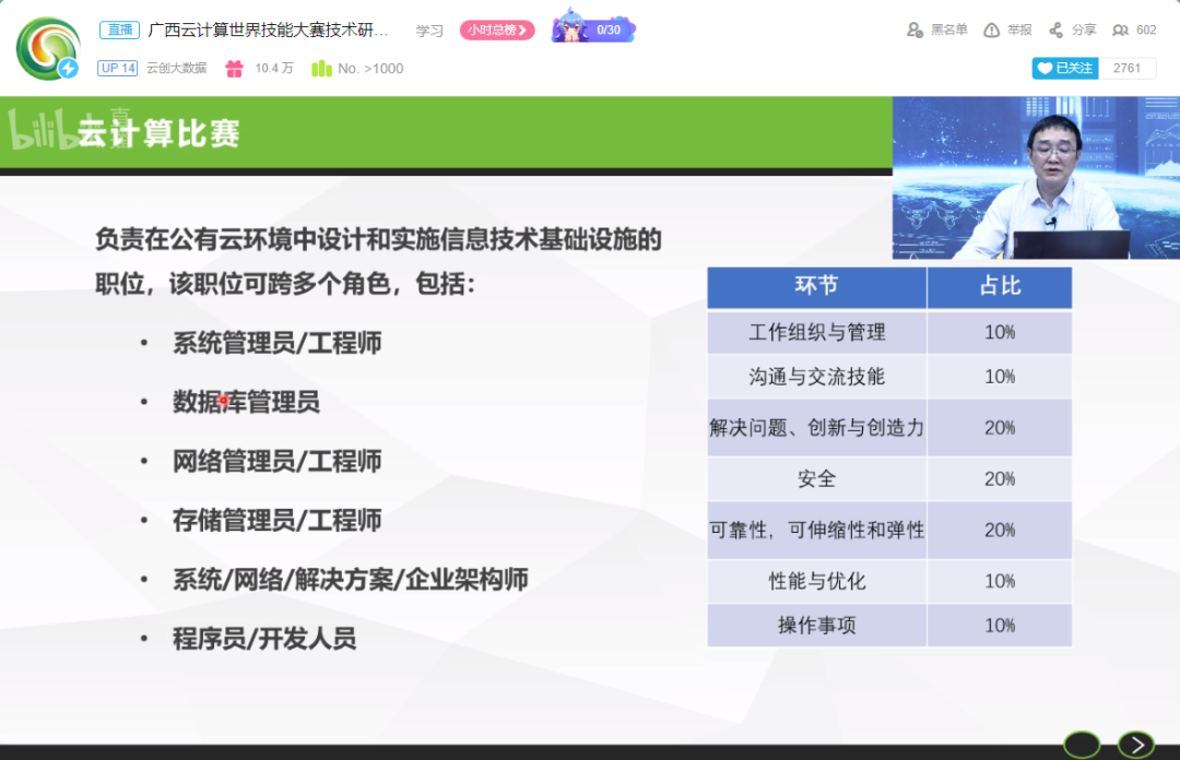 全区职业院校、技工院校相关专业带头人、骨干教师,第46届世赛云计算赛项广西集训选手及指导老师准时参加了本次大会。同时,因为大会在哔哩哔哩云创大数据直播间进行全程直播,众多对云计算感兴趣的朋友也得以观看学习。