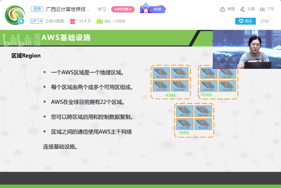 最后,云创优秀工程师/讲师张婧雯则为大家带来了AWS云计算的相关知识介绍。其中,包括AWS云计算基础、云概念概述、AWS基础设施,以及AWS的核心服务等丰富翔实的内容。张老师讲解非常细致,大家在弹幕区域直呼讲解好、长知识,大有获益。