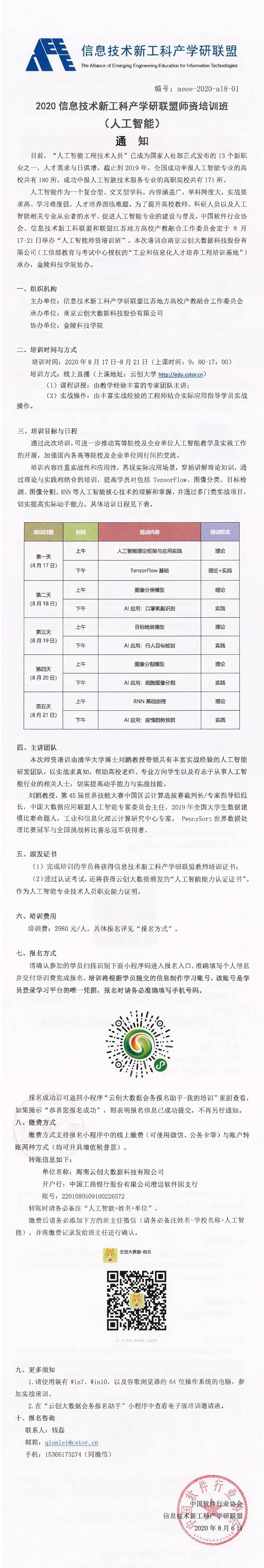 (人工智能)欢迎参加2020信息技术新工科产学研联盟师资培训班!