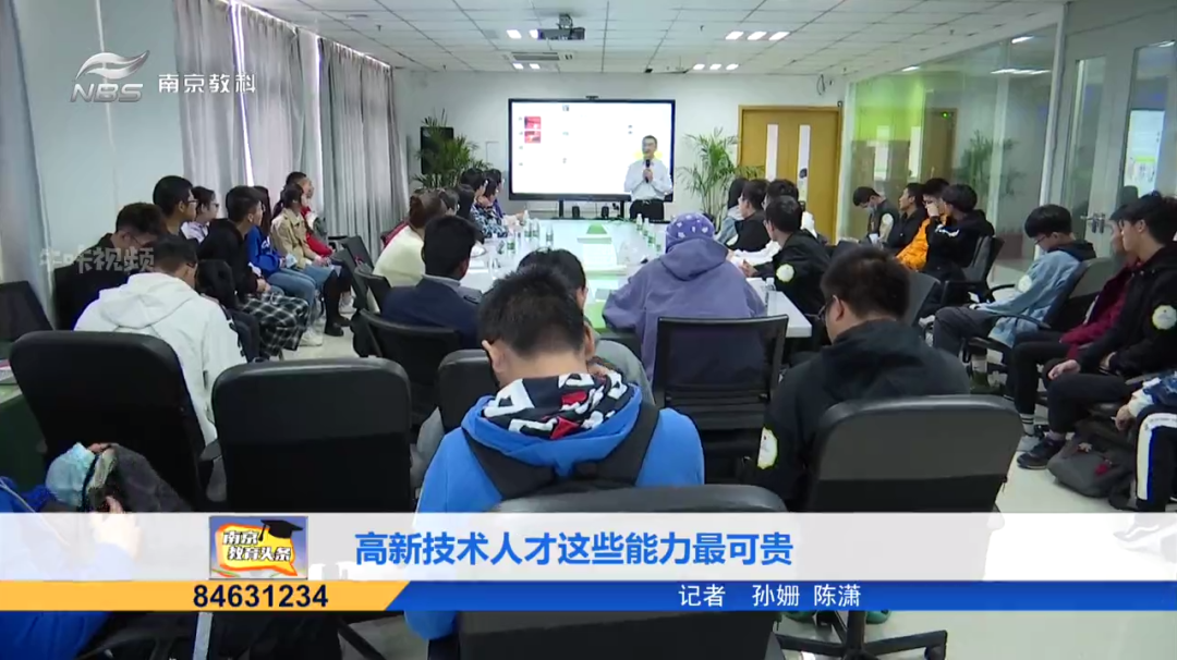 11月23日,南京电视台教科频道《南京教育头条》栏目以“高新技术人才这些能力最可贵”为题对11月20日的南京大学生社会实践岗——园区青春体验官走进云创大数据活动进行报道。